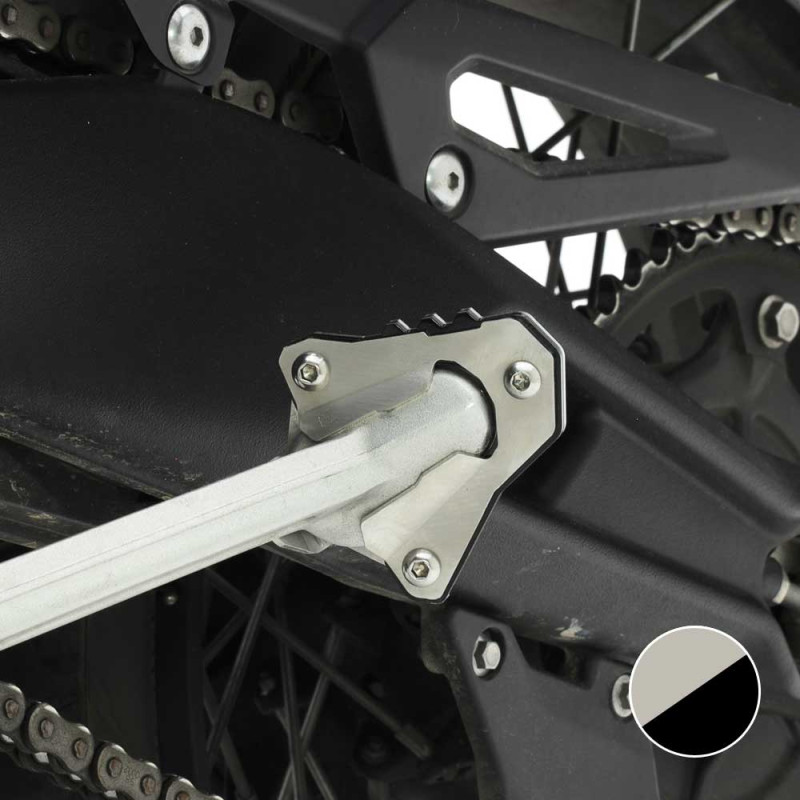 La base de ampliación para el caballete lateral de Crosspro aumenta la zona de apoyo y aporta más estabilidad en terrenos difíciles como arena, tierra o grava.