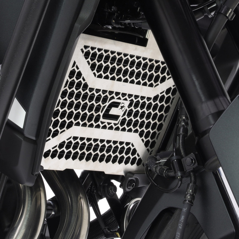 El protector de radiador Crosspro para moto protege el radiador de los impactos de piedras proyectadas por otro vehículo.