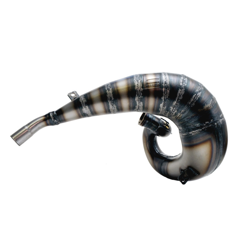 La bufanda para escape Fresco tipo Factory está fabricada en chapa de acero de espesor variable y artesanalmente para optimizar el flujo de gases de escape. El aspecto es llamativo y las uniones soldadas están contenidas de tal manera que se evitan protuberancias.