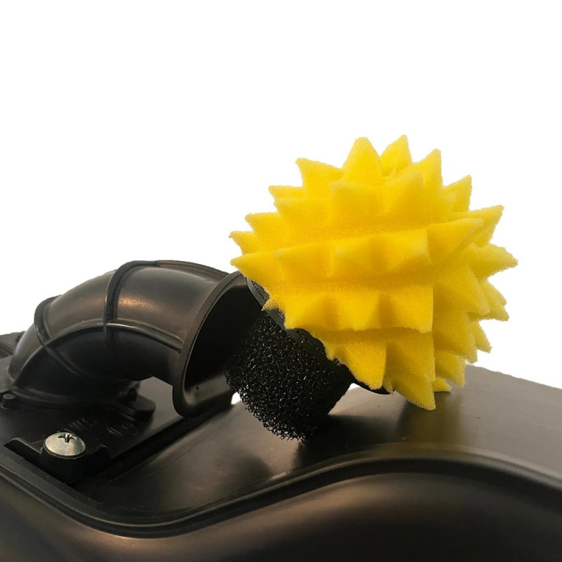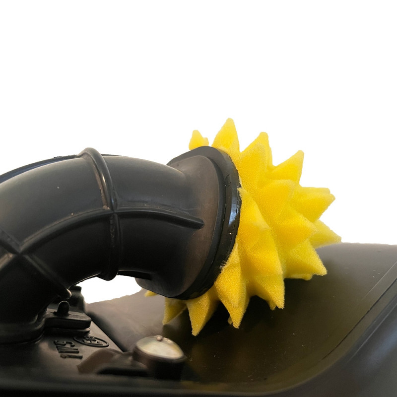 El pre filtro para snorkel FunnelWeb T7 está diseñado para encajar en la boca del snorkel de entrada de la caja de aire. La base de espuma de poro abierto del prefiltro simplemente se introduce en la abertura del esnórquel y no requiere nada más para mantenerlo en su lugar.