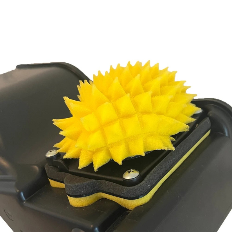 El pre filtro FunnelWeb T7 está diseñado para reemplazar el tubo de admisión de la caja de aire, que debe quitarse para permitir la instalación. La base de espuma de poro abierto del prefiltro simplemente se introduce en la abertura de la tapa de la caja de aire y no requiere nada más para mantenerlo en su lugar.