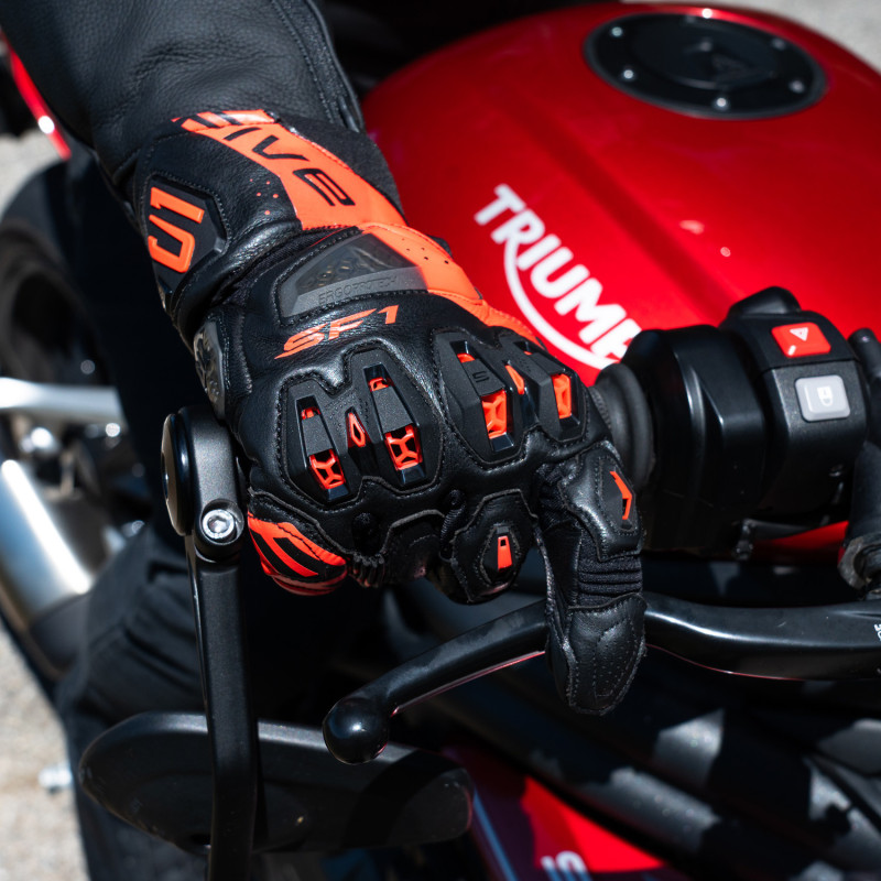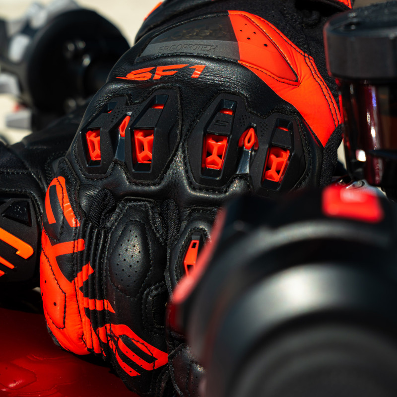 Como un roadster que conserva solo las características esenciales, el SF1 EVO, con su diseño de puño acortado, ofrece al piloto justo lo que necesita para un guante de alto rendimiento. Sin duda, encantará a los pilotos que disfrutan de la experiencia al máximo, pero que desean controlar los riesgos en caso de caída, mientras disfrutan al máximo del placer de conducir.