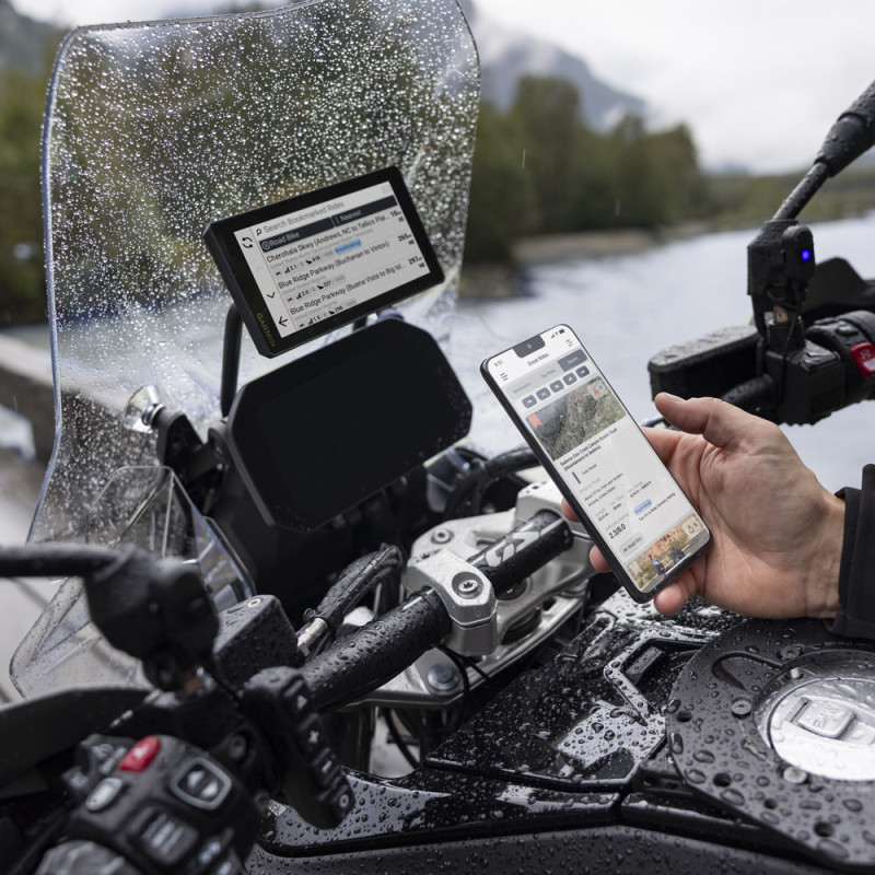 Cuando llegue el momento de ponerse en marcha, utiliza el planificador de rutas con los mapas preinstalados para crear una aventura personalizada; Las imágenes satelitales descargables muestran la vista desde arriba. También podrás visualizar cuanta inclinación hiciste en curvas con el indicador de ángulo inclinado y recorrer las carreteras más sinuosas, pintorescas o emocionantes con el entorno Garmin Adventurous Route y descubre rutas populares en tu mapa con la función de rutas de motos populares.