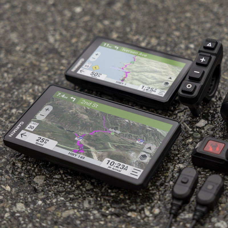 Controla el mapa cómodamente con los botones sin soltar el manillar mientras conduces al vincularlo por cable con el controlador del manillar con cable (se vende por separado).