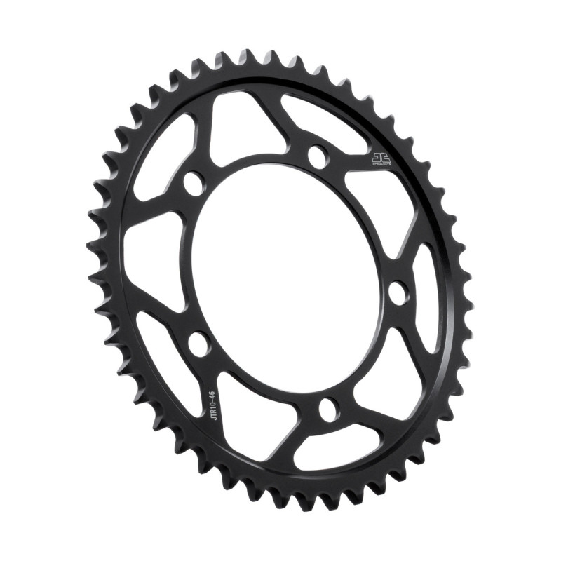 Los piñones y coronas de acero JT se fabrican utilizando acero de alto carbono C49 de la mejor calidad para las coronas y aleación de acero cromado SCM420 para los piñones. La gama de piñones y coronas JT cuenta con más de 2500 modelos para todas las motocicletas y vehículos todo terreno.