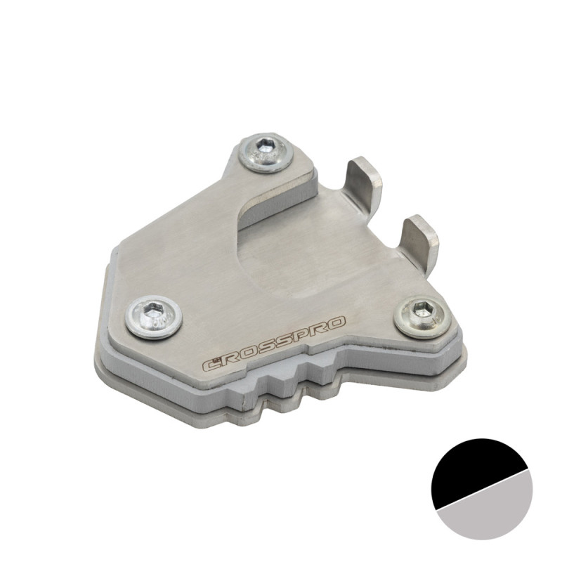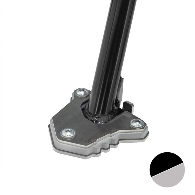 La base de ampliación para el caballete lateral de Crosspro aumenta la zona de apoyo y aporta más estabilidad en terrenos difíciles como arena, tierra o grava.