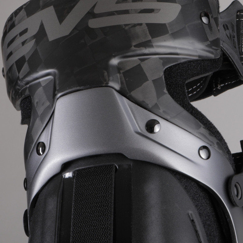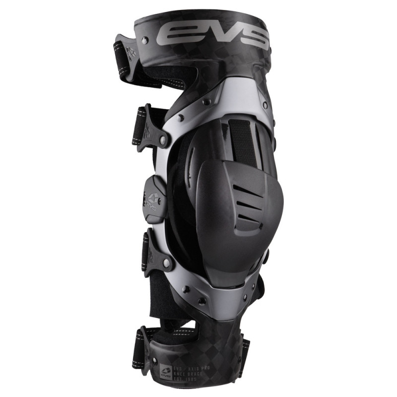Las rodilleras ortopédicas EVS Axis Pro presentan una combinación de construcción de marco de aluminio y fibra de carbono. El diseño de la bisagra de aluminio permite una estructura de perfil bajo, lo que da como resultado un soporte cómodo, fluido, ligero y rígido.