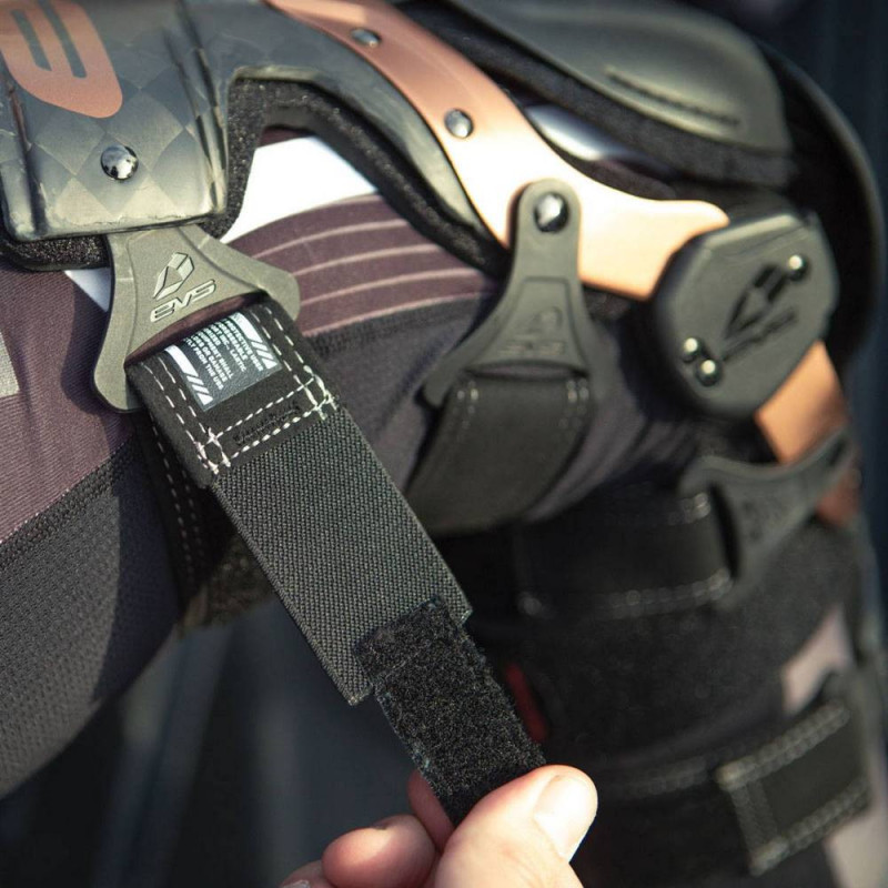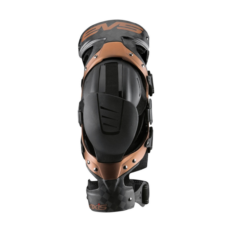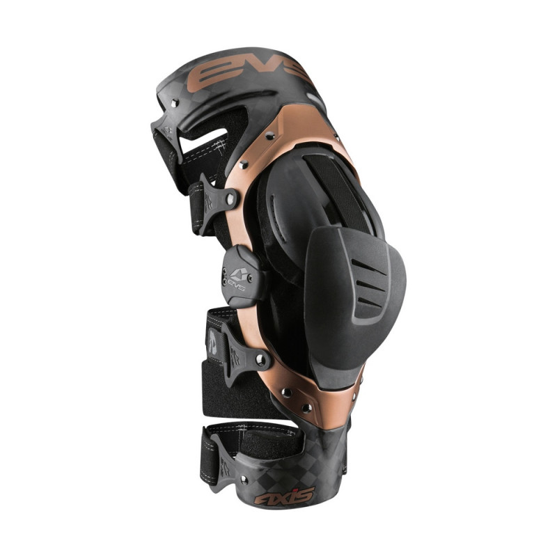 Las rodilleras ortopédicas EVS Axis Pro presentan una combinación de construcción de marco de aluminio y fibra de carbono. El diseño de la bisagra de aluminio permite una estructura de perfil bajo, lo que da como resultado un soporte cómodo, fluido, ligero y rígido.