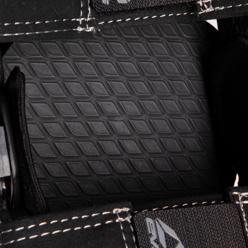 Este forro antimicrobiano proporciona un soporte acolchado suave y una superficie texturizada para limitar la migración de la rodillera.