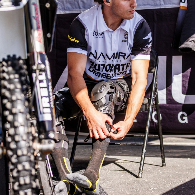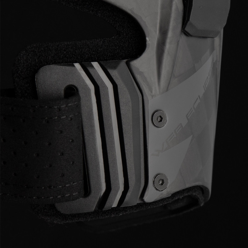 Fabricada con tecnología de fibra de carbono de vanguardia, nuestra rodillera optimiza el área de superficie crítica para brindar una protección incomparable. Arroja un impresionante 15% de su peso en comparación con el modelo anterior, manteniendo al mismo tiempo los más altos estándares de seguridad.