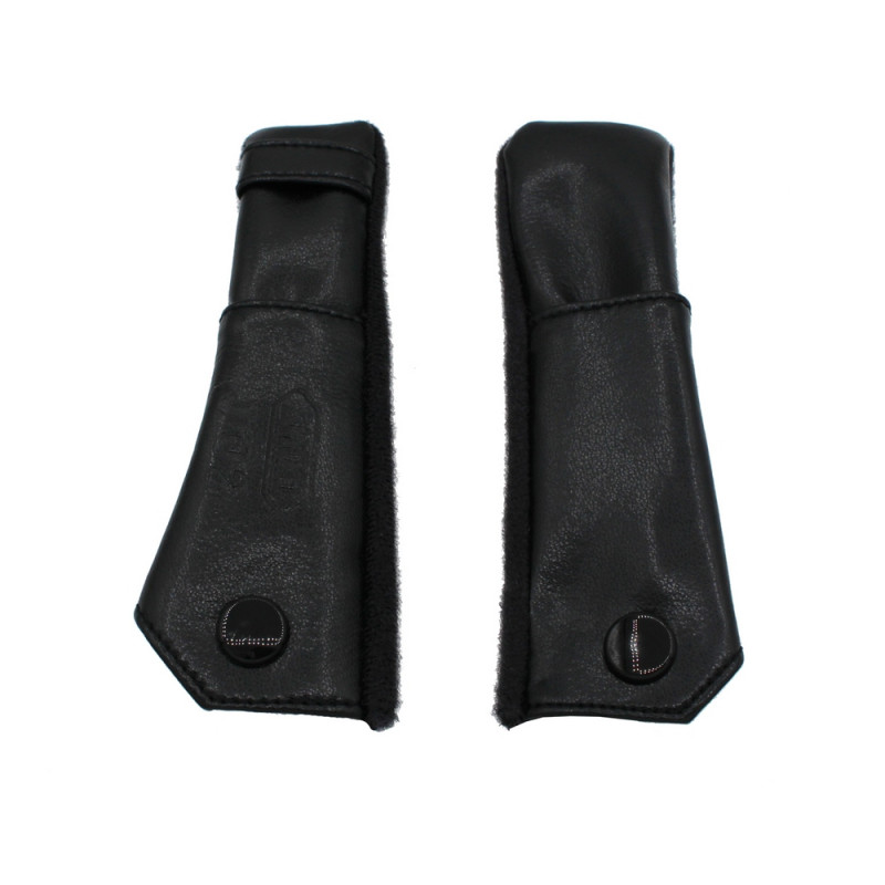 - Confeccionado en suave material polar, con cubierta de piel sintética y botón a presión de metal.